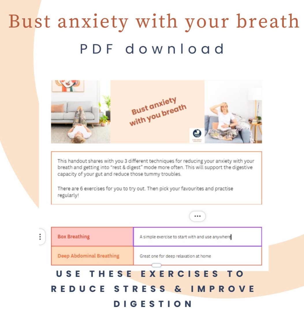 “Bust Anxiety With Your Breath” PDF (Value $15) Simple, fast-acting tools to reduce gut-triggering stress.