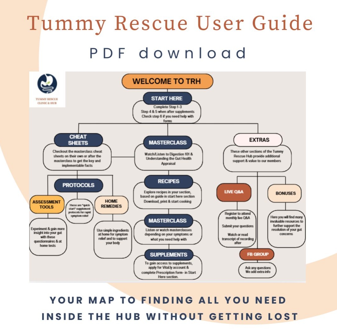 Tummy Rescue Hub User Guide (Value $10) Your step-by-step walkthrough so you never feel lost and can find exactly what you need.